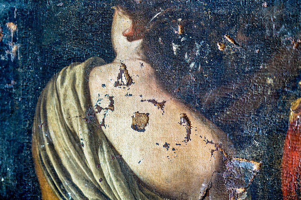 Close up of the damage to Hercules and Omphale from the Sursock Palace Collections which was badly damaged in the 2020 explosion in Beirut © 2022 J. Paul Getty Trust